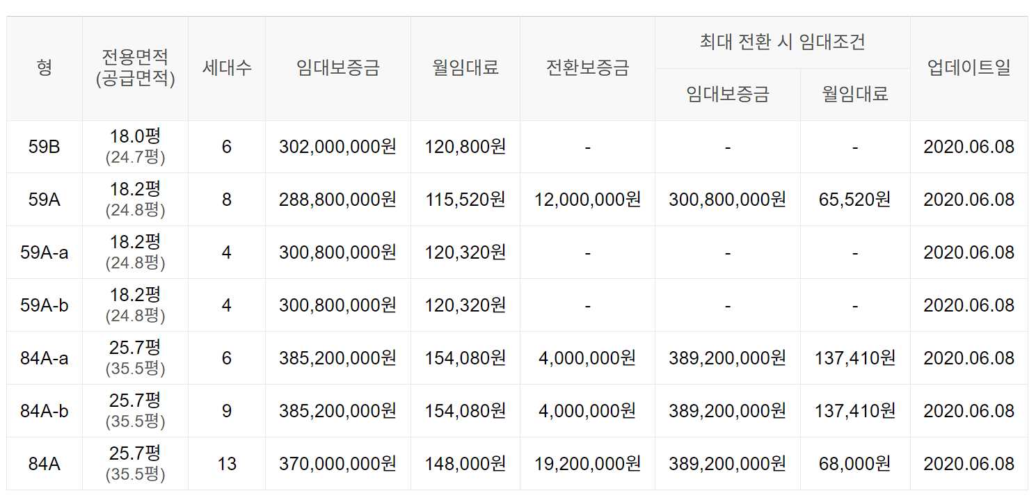 임대보증금 및 월 임대료는 입주자 모집공고일 기준이며, 보증금 최대 전환 시 변동될 수 있습니다.