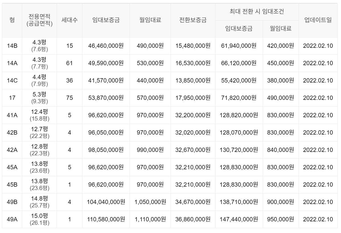 임대보증금 및 월 임대료는 입주자 모집공고일 기준이며, 보증금 최대 전환 시 변동될 수 있습니다.