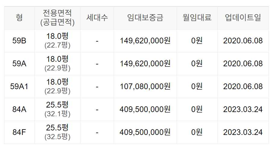 임대보증금 및 월 임대료는 입주자 모집공고일 기준이며, 보증금 최대 전환 시 변동될 수 있습니다.