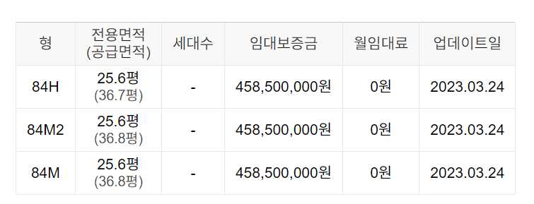 임대보증금 및 월 임대료는 입주자 모집공고일 기준이며, 보증금 최대 전환 시 변동될 수 있습니다.