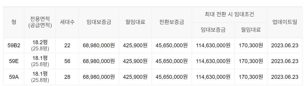 임대보증금 및 월 임대료는 입주자 모집공고일 기준이며, 보증금 최대 전환 시 변동될 수 있습니다.