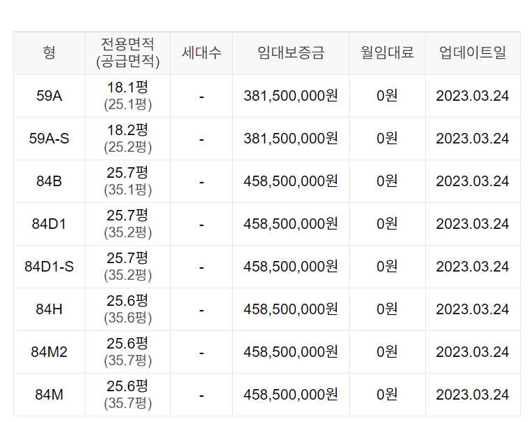 임대보증금 및 월 임대료는 입주자 모집공고일 기준이며, 보증금 최대 전환 시 변동될 수 있습니다.