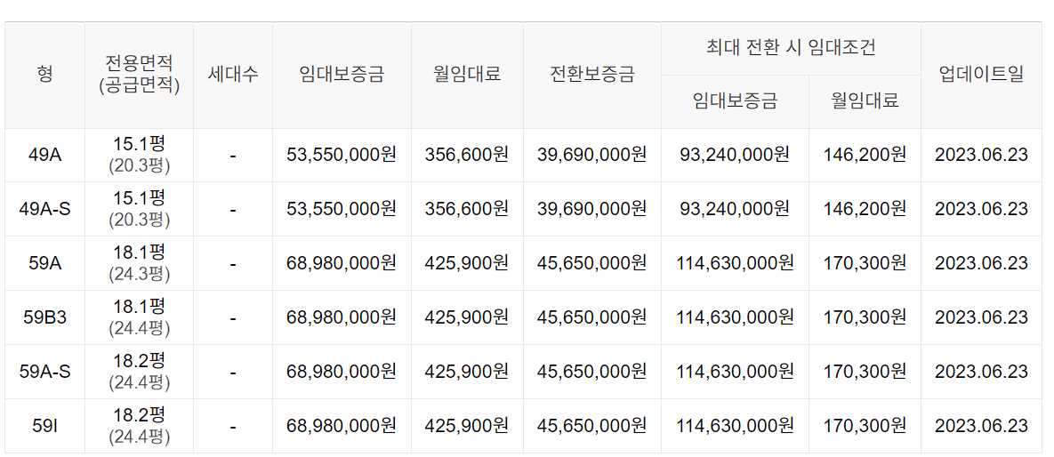 임대보증금 및 월 임대료는 입주자 모집공고일 기준이며, 보증금 최대 전환 시 변동될 수 있습니다.