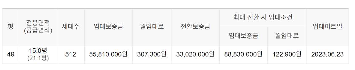 임대보증금 및 월 임대료는 입주자 모집공고일 기준이며, 보증금 최대 전환 시 변동될 수 있습니다.