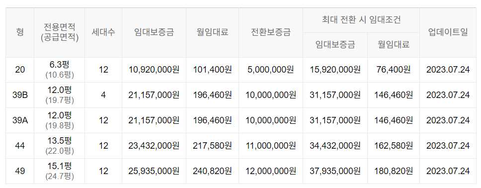 임대보증금 및 월 임대료는 입주자 모집공고일 기준이며, 보증금 최대 전환 시 변동될 수 있습니다.