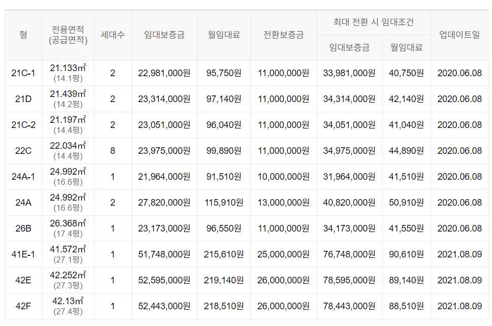 임대보증금 및 월 임대료는 입주자 모집공고일 기준이며, 보증금 최대 전환 시 변동될 수 있습니다.