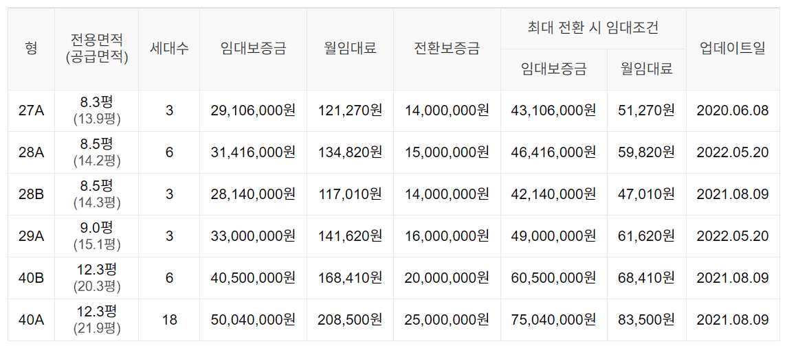 임대보증금 및 월 임대료는 입주자 모집공고일 기준이며, 보증금 최대 전환 시 변동될 수 있습니다.