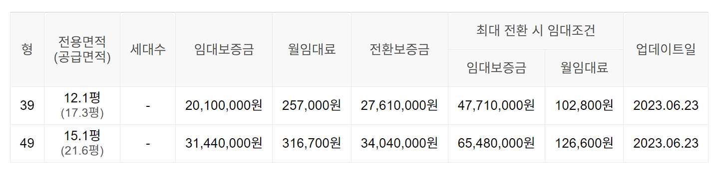 임대보증금 및 월 임대료는 입주자 모집공고일 기준이며, 보증금 최대 전환 시 변동될 수 있습니다.