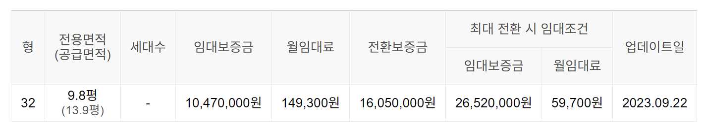 임대보증금 및 월 임대료는 입주자 모집공고일 기준이며, 보증금 최대 전환 시 변동될 수 있습니다.