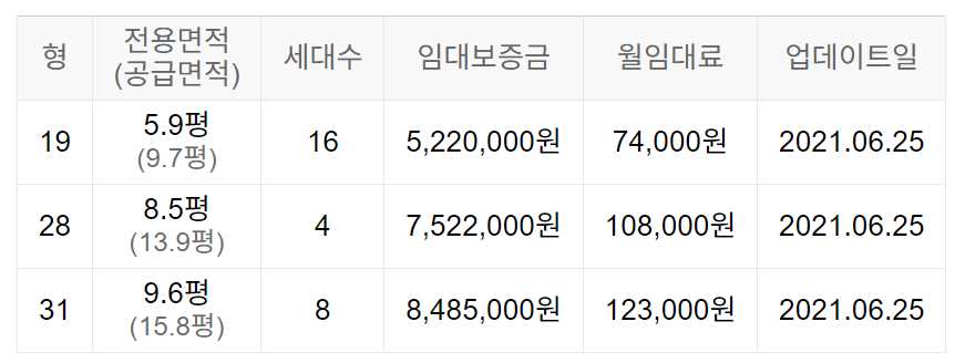임대보증금 및 월 임대료는 입주자 모집공고일 기준이며, 보증금 최대 전환 시 변동될 수 있습니다.