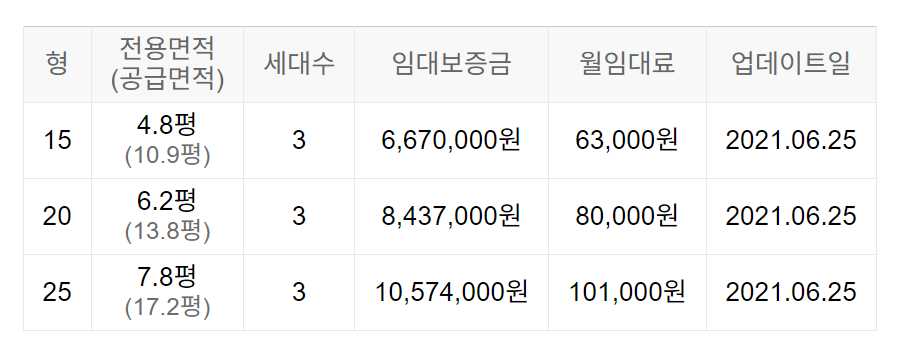 임대보증금 및 월 임대료는 입주자 모집공고일 기준이며, 보증금 최대 전환 시 변동될 수 있습니다.