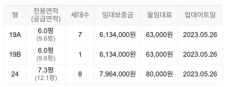 임대보증금 및 월 임대료는 입주자 모집공고일 기준이며, 보증금 최대 전환 시 변동될 수 있습니다.