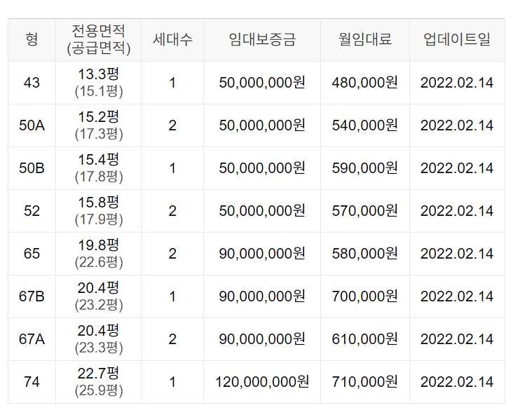 임대보증금 및 월 임대료는 입주자 모집공고일 기준이며, 보증금 최대 전환 시 변동될 수 있습니다.