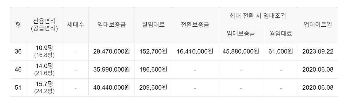 임대보증금 및 월 임대료는 입주자 모집공고일 기준이며, 보증금 최대 전환 시 변동될 수 있습니다.