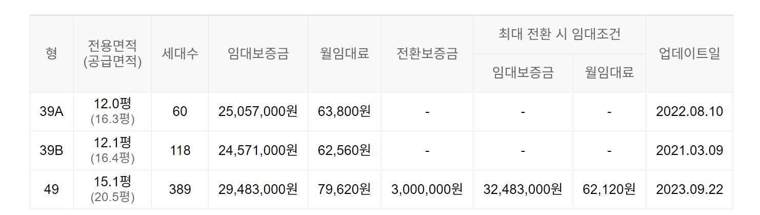 임대보증금 및 월 임대료는 입주자 모집공고일 기준이며, 보증금 최대 전환 시 변동될 수 있습니다.