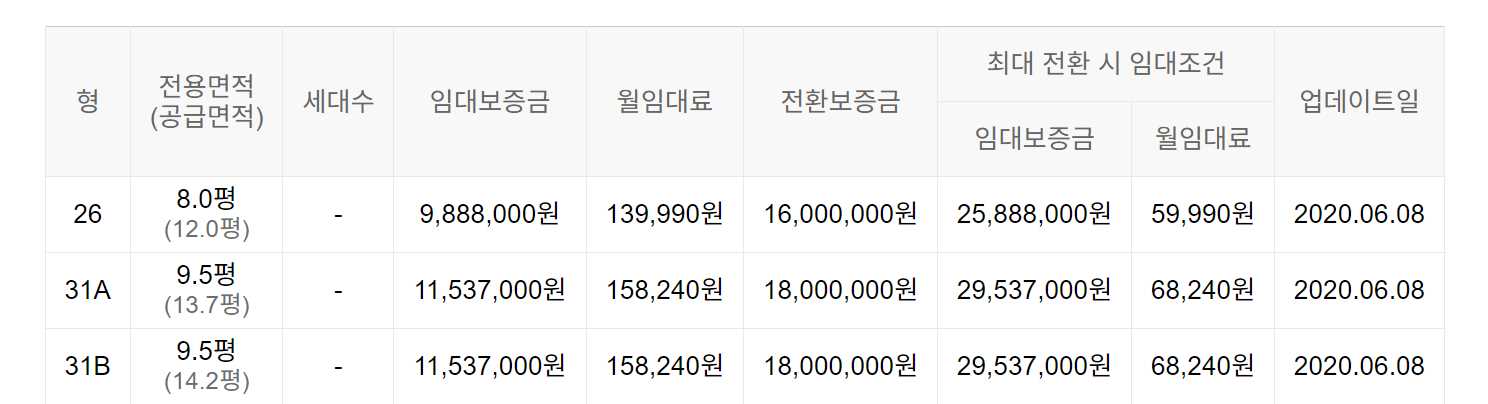 임대보증금 및 월 임대료는 입주자 모집공고일 기준이며, 보증금 최대 전환 시 변동될 수 있습니다.