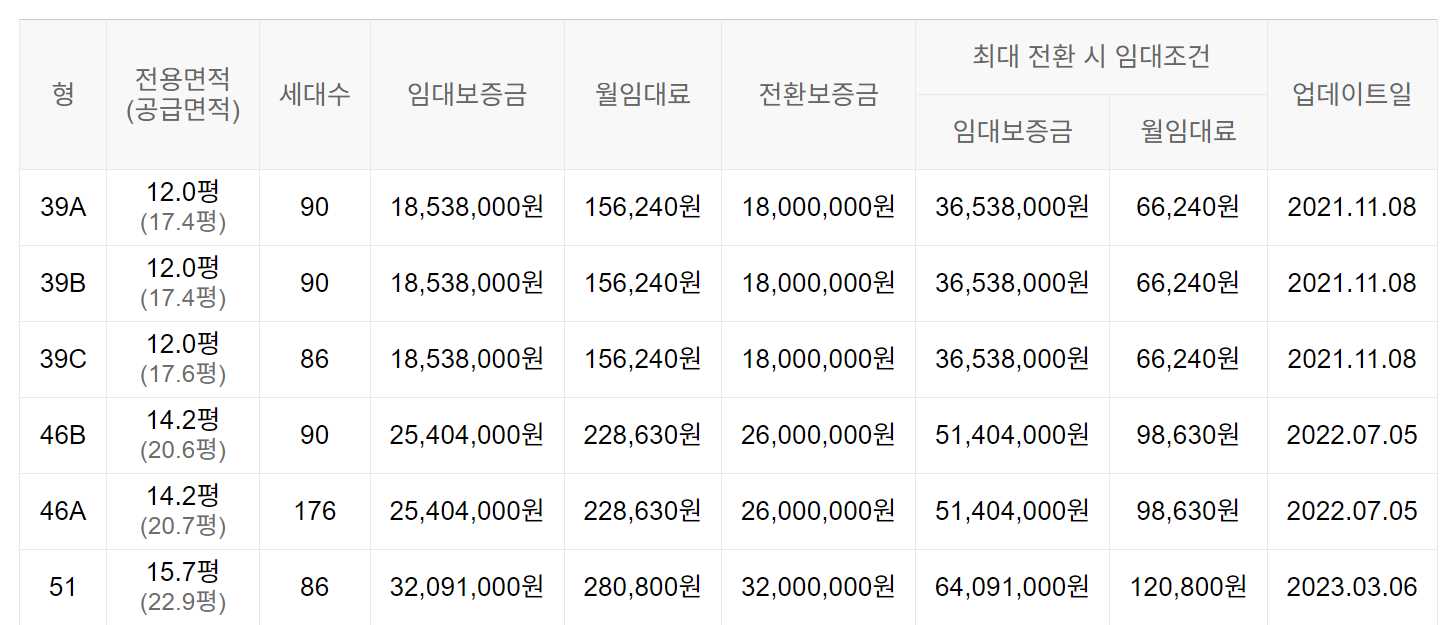임대보증금 및 월 임대료는 입주자 모집공고일 기준이며, 보증금 최대 전환 시 변동될 수 있습니다.