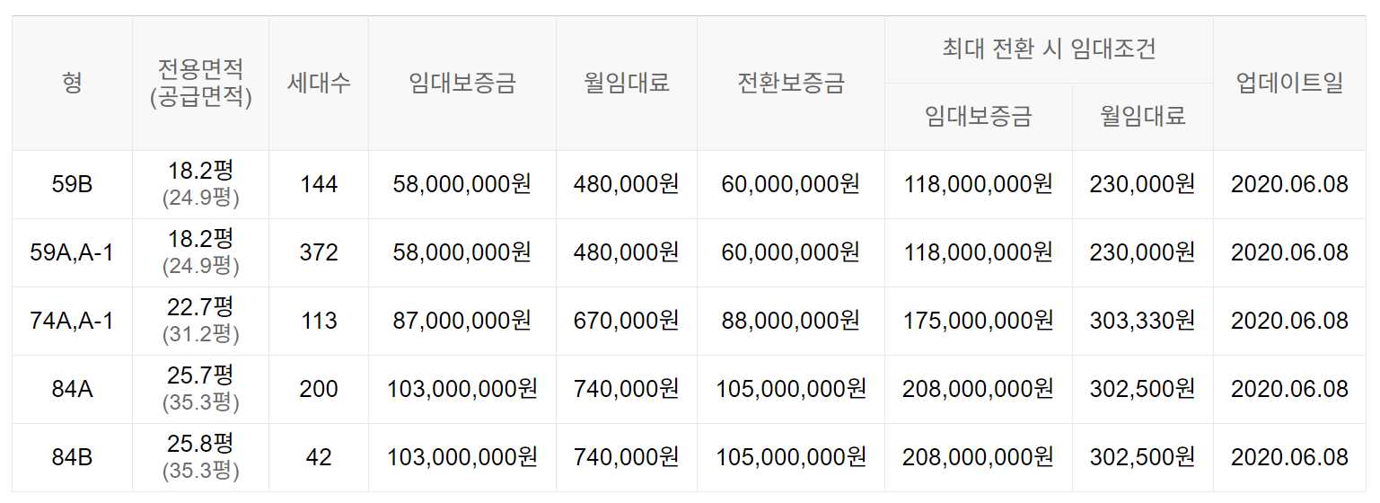 임대보증금 및 월 임대료는 입주자 모집공고일 기준이며, 보증금 최대 전환 시 변동될 수 있습니다.