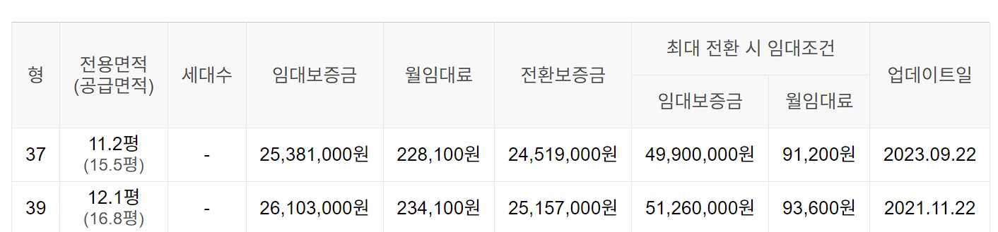 임대보증금 및 월 임대료는 입주자 모집공고일 기준이며, 보증금 최대 전환 시 변동될 수 있습니다.