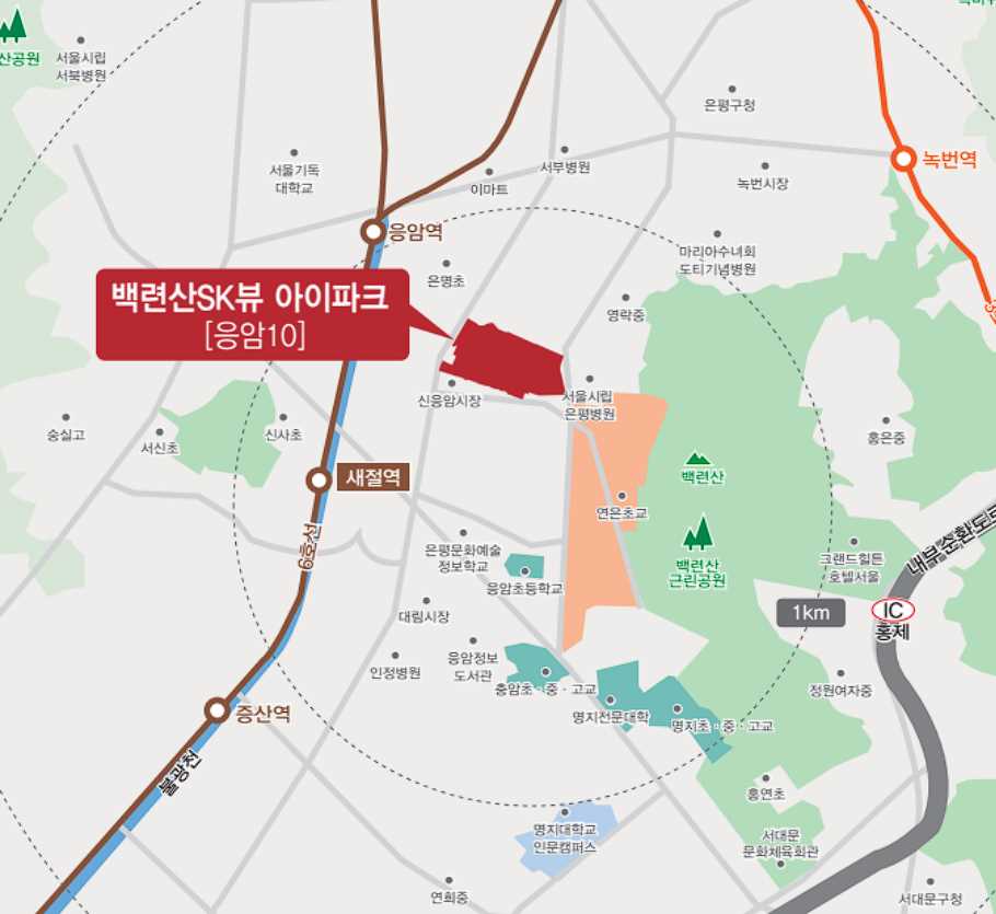 백련산SK뷰아이파크는 서울 은평구 응암역, 세절역 근처에 위치하고 있습니다.