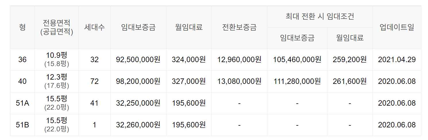 임대보증금 및 월 임대료는 입주자 모집공고일 기준이며, 보증금 최대 전환 시 변동될 수 있습니다.
