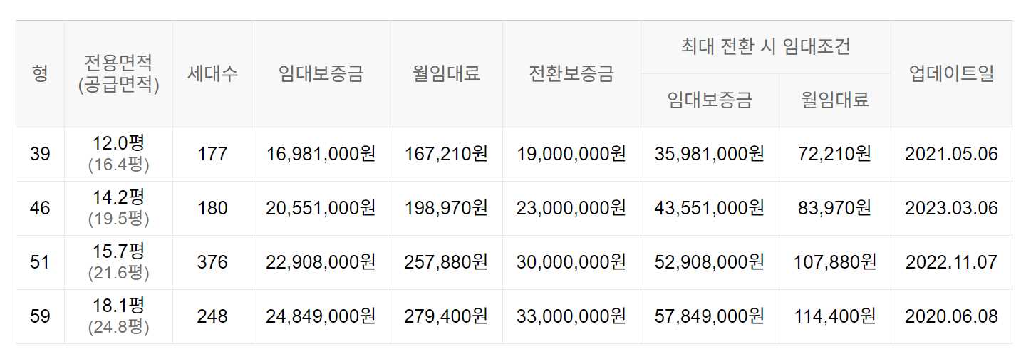 임대보증금 및 월 임대료는 입주자 모집공고일 기준이며, 보증금 최대 전환 시 변동될 수 있습니다.