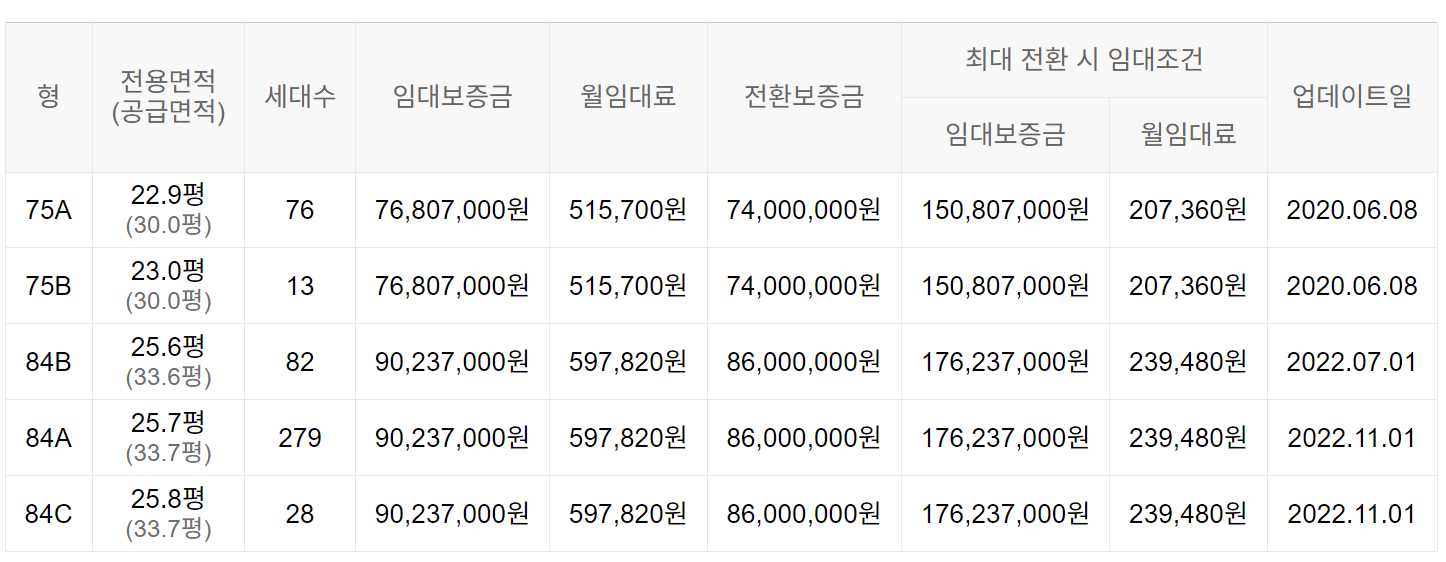 임대보증금 및 월 임대료는 입주자 모집공고일 기준이며, 보증금 최대 전환 시 변동될 수 있습니다.