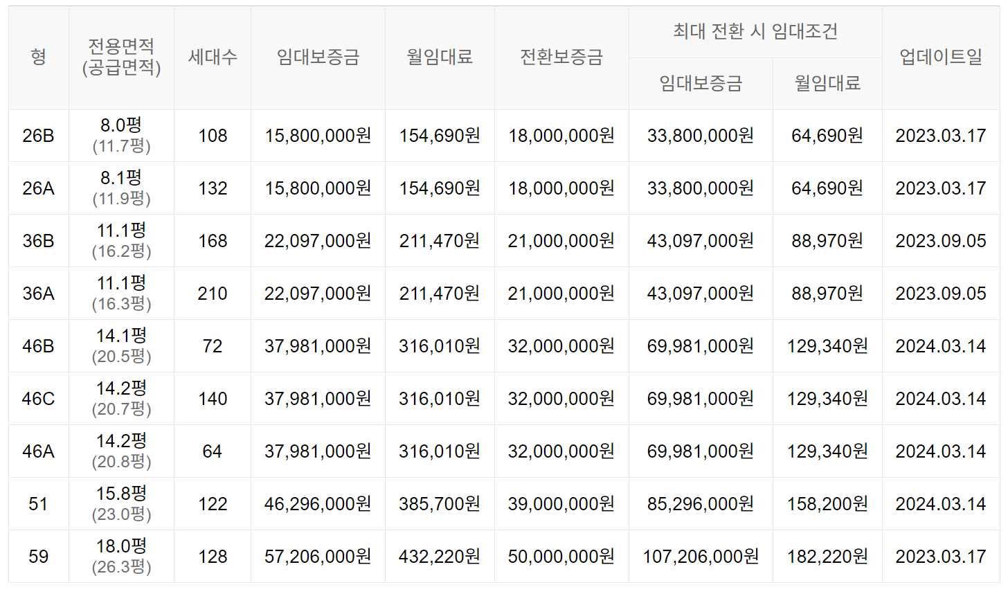 임대보증금 및 월 임대료는 입주자 모집공고일 기준이며, 보증금 최대 전환 시 변동될 수 있습니다.