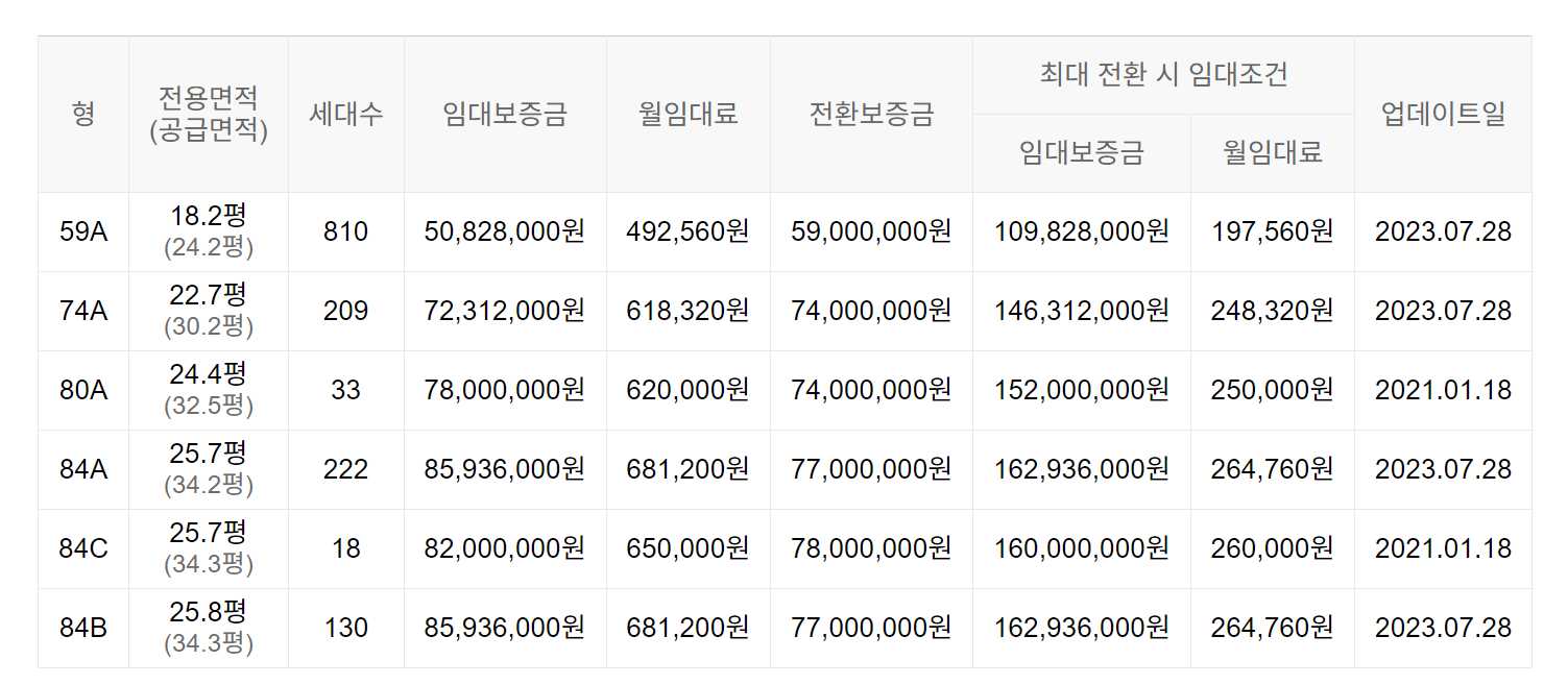 임대보증금 및 월 임대료는 입주자 모집공고일 기준이며, 보증금 최대 전환 시 변동될 수 있습니다.