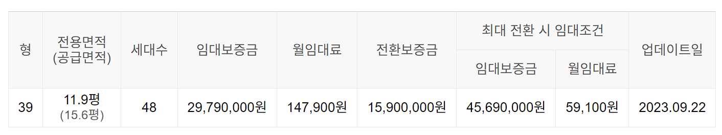 임대보증금 및 월 임대료는 입주자 모집공고일 기준이며, 보증금 최대 전환 시 변동될 수 있습니다.