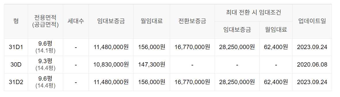 임대보증금 및 월 임대료는 입주자 모집공고일 기준이며, 보증금 최대 전환 시 변동될 수 있습니다.