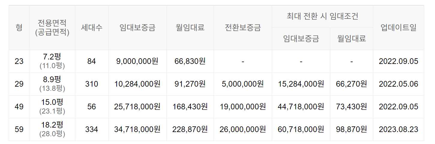 임대보증금 및 월 임대료는 입주자 모집공고일 기준이며, 보증금 최대 전환 시 변동될 수 있습니다.