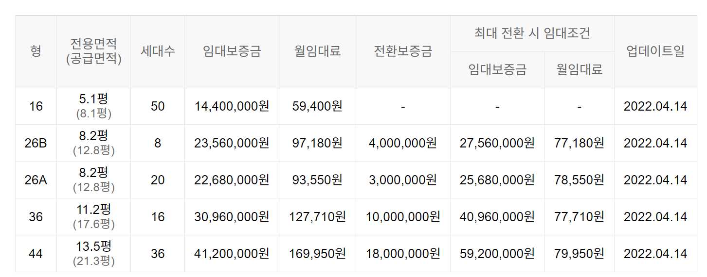임대보증금 및 월 임대료는 입주자 모집공고일 기준이며, 보증금 최대 전환 시 변동될 수 있습니다.
