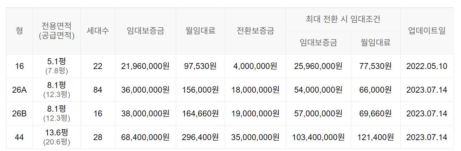임대보증금 및 월 임대료는 입주자 모집공고일 기준이며, 보증금 최대 전환 시 변동될 수 있습니다.