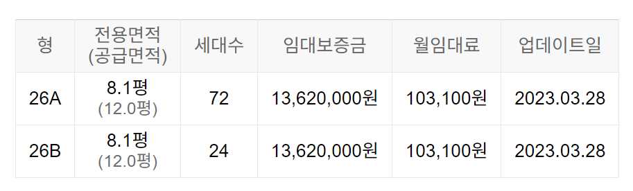 임대보증금 및 월 임대료는 입주자 모집공고일 기준이며, 보증금 최대 전환 시 변동될 수 있습니다.