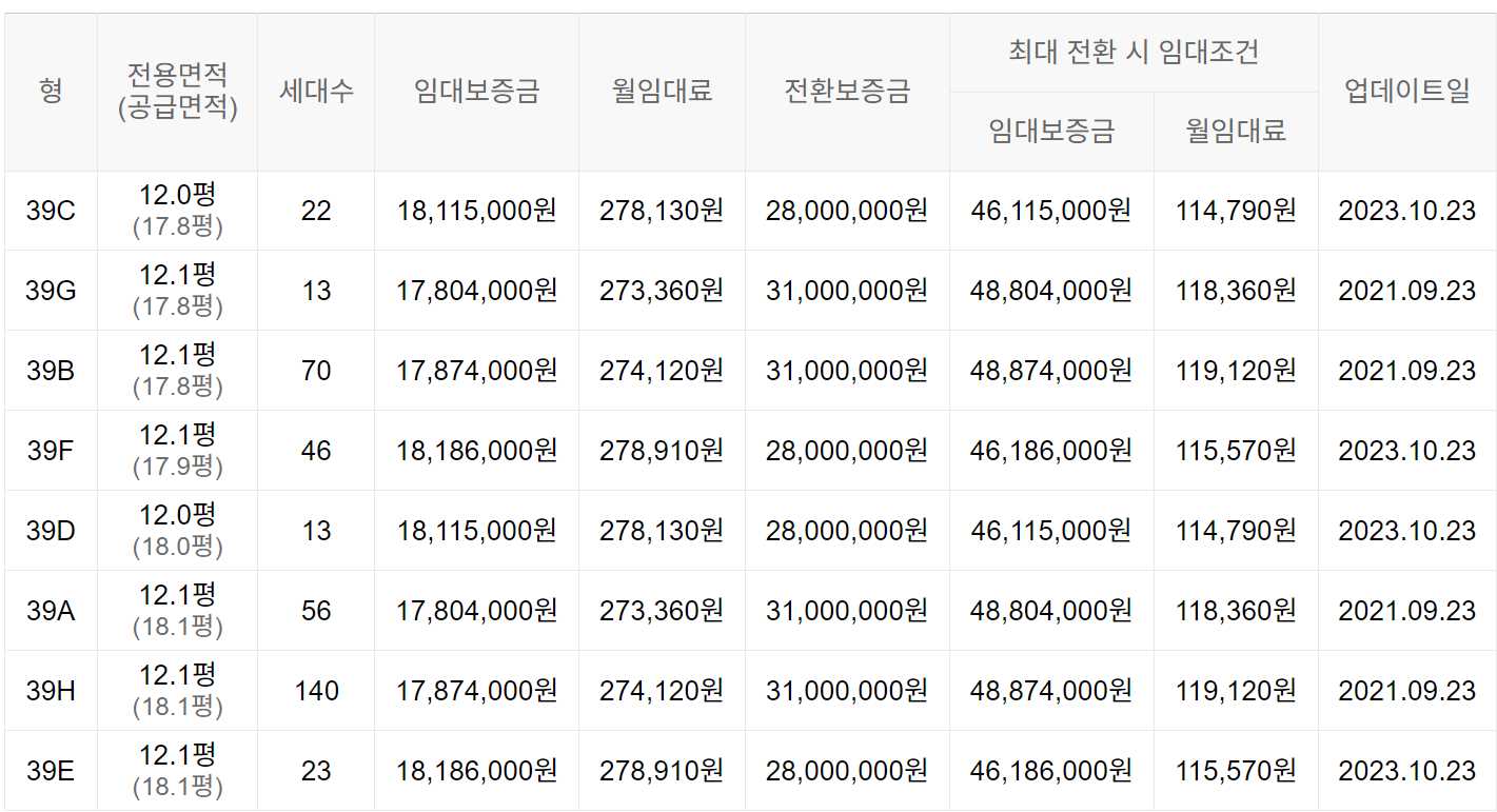 임대보증금 및 월 임대료는 입주자 모집공고일 기준이며, 보증금 최대 전환 시 변동될 수 있습니다.