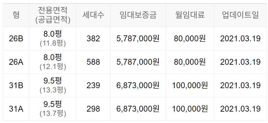 임대보증금 및 월 임대료는 입주자 모집공고일 기준이며, 보증금 최대 전환 시 변동될 수 있습니다.