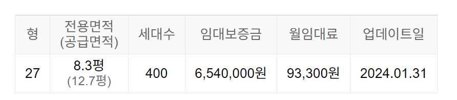 임대보증금 및 월 임대료는 입주자 모집공고일 기준이며, 보증금 최대 전환 시 변동될 수 있습니다.