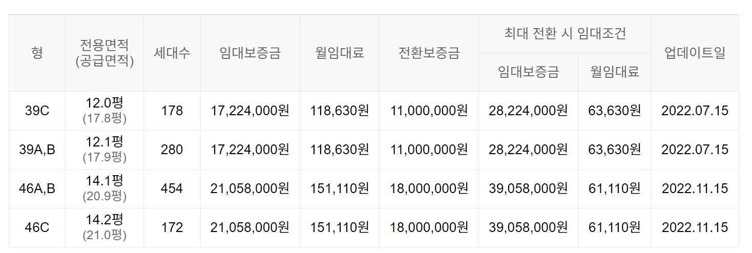 임대보증금 및 월 임대료는 입주자 모집공고일 기준이며, 보증금 최대 전환 시 변동될 수 있습니다.