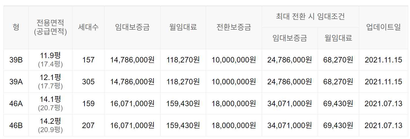 임대보증금 및 월 임대료는 입주자 모집공고일 기준이며, 보증금 최대 전환 시 변동될 수 있습니다.