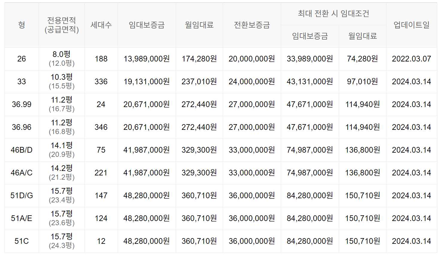 임대보증금 및 월 임대료는 입주자 모집공고일 기준이며, 보증금 최대 전환 시 변동될 수 있습니다.