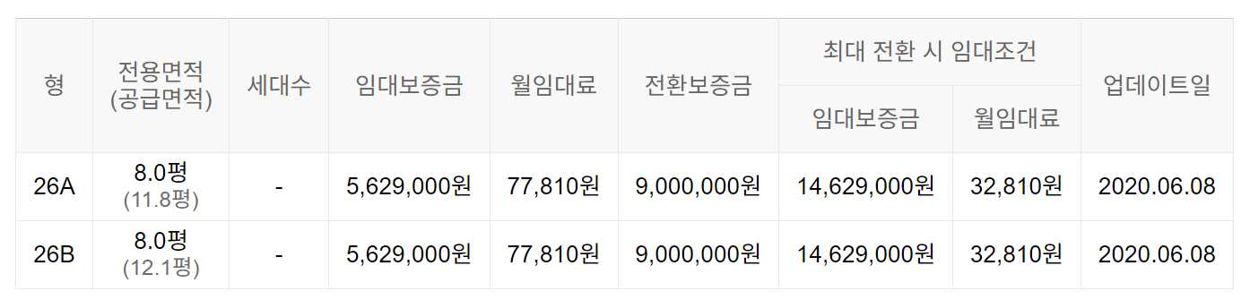 임대보증금 및 월 임대료는 입주자 모집공고일 기준이며, 보증금 최대 전환 시 변동될 수 있습니다.
