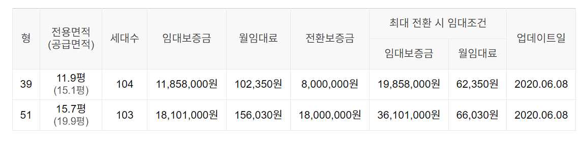 임대보증금 및 월 임대료는 입주자 모집공고일 기준이며, 보증금 최대 전환 시 변동될 수 있습니다.