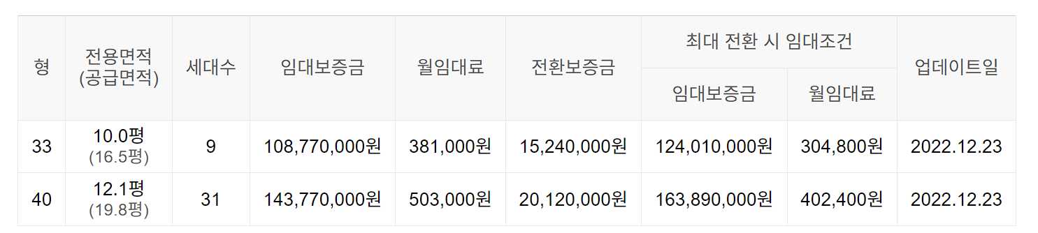 임대보증금 및 월 임대료는 입주자 모집공고일 기준이며, 보증금 최대 전환 시 변동될 수 있습니다.