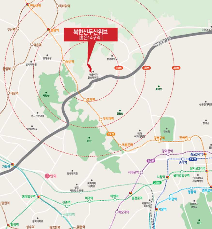 북한산두산위브는 서울 서대문구 서울여자간호대학교, 홍은초등학교 근처에 위치하고 있습니다.