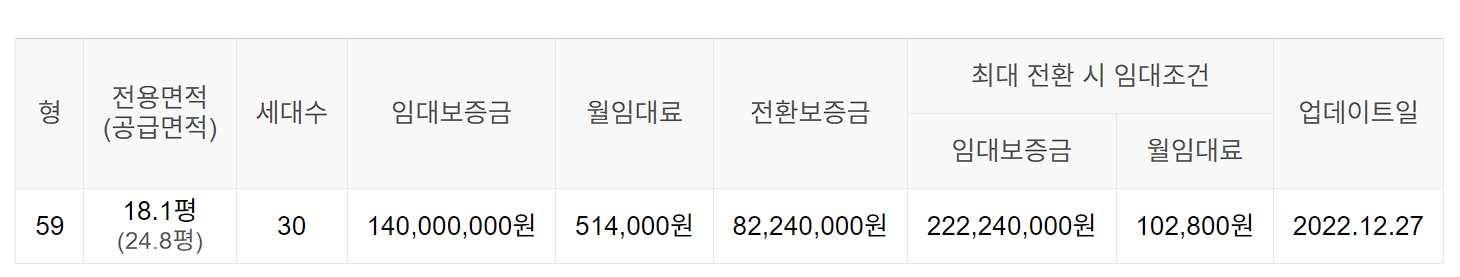 임대보증금 및 월 임대료는 입주자 모집공고일 기준이며, 보증금 최대 전환 시 변동될 수 있습니다.