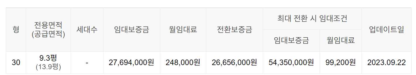 임대보증금 및 월 임대료는 입주자 모집공고일 기준이며, 보증금 최대 전환 시 변동될 수 있습니다.