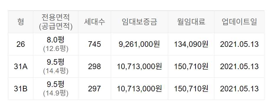 임대보증금 및 월 임대료는 입주자 모집공고일 기준이며, 보증금 최대 전환 시 변동될 수 있습니다.