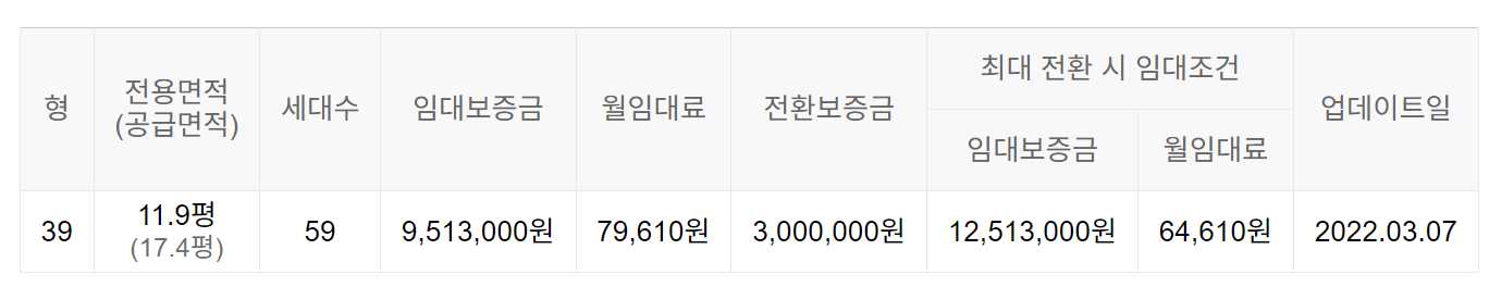 임대보증금 및 월 임대료는 입주자 모집공고일 기준이며, 보증금 최대 전환 시 변동될 수 있습니다.