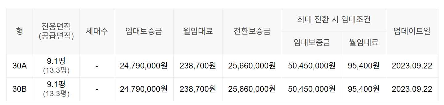 임대보증금 및 월 임대료는 입주자 모집공고일 기준이며, 보증금 최대 전환 시 변동될 수 있습니다.